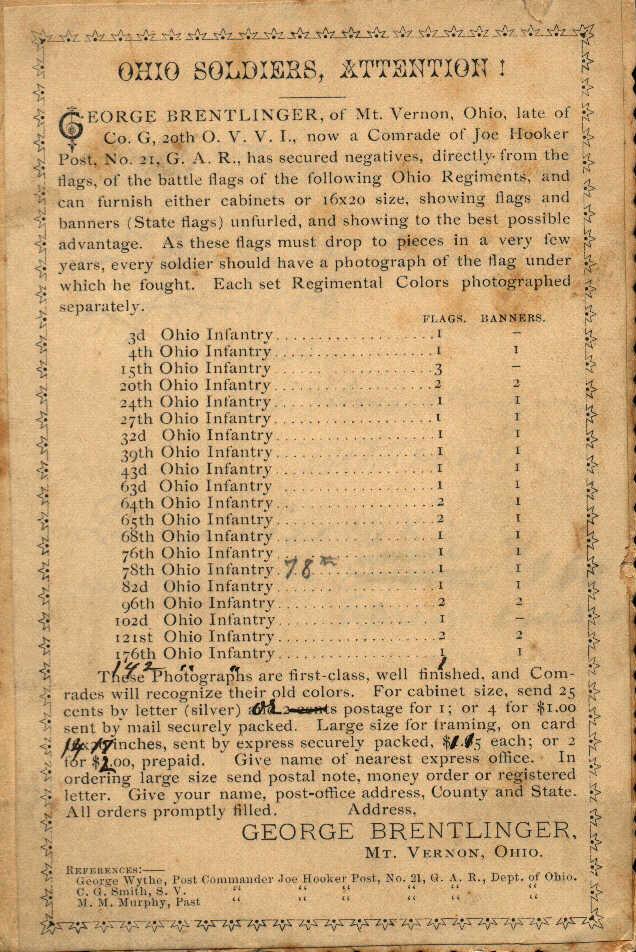Back side of flag photo showing regiments, prices, etc. |
