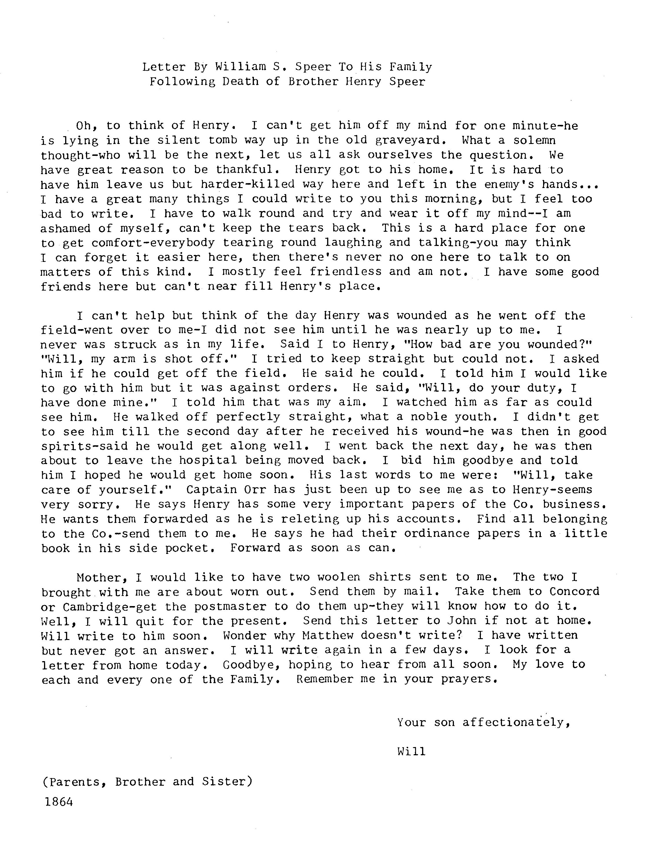 Letters from 30th Illinois mentioning 78th Ohio, Courtesy of Matthew Anderson, historian of the 30th Illinois.William S. Speer, Corporal, later promoted to Sergeant, Co. A, in the field, 1864, to his family upon the death of his brother Henry, Lieutenant of Co. A